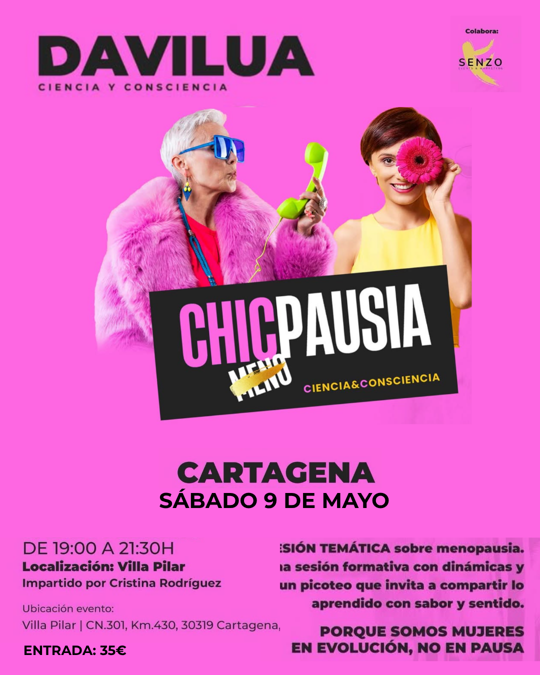Porque somos mujeres en EVOLUCIÓN, NO EN PAUSA, hablamos de hormonas, cerebro, piel, deseo y energía… con rigor, pero sin bata blanca.